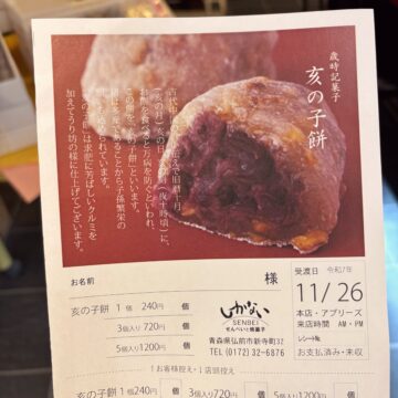 11月26日(水)、新寺町本店・弘前駅アプリーズ店での販売です。