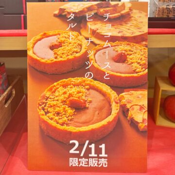 昨年販売しました「チョコムースとピーナッツのタルト」。