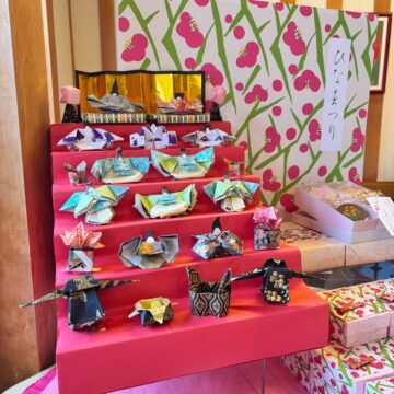 店頭には、折り紙で作ったおひなさまも設置!