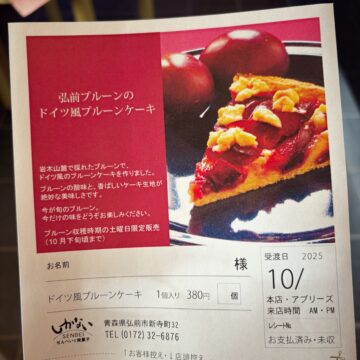 弘前近郊で収穫されたプルーンのプルーンケーキ、今年も販売いたします。