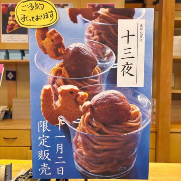 栗の歳時記菓子「十三夜」。今年は11月2日の販売です。